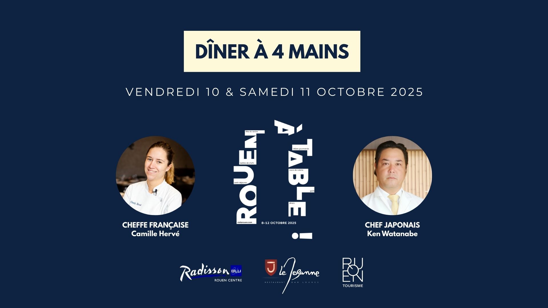 As part of the ROUEN À TABLE! event, this Four-Hands Dinner brings together two inspired chefs who unite their know-how for two memorable gastronomic evenings.